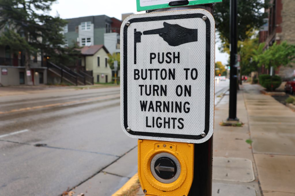 The concept of universal design highlights that features created to assist people with disabilities often benefit all users. For example, pedestrian push buttons located at crosswalks, including here on Williamson Street. (Chali Pittman/Civic Media)