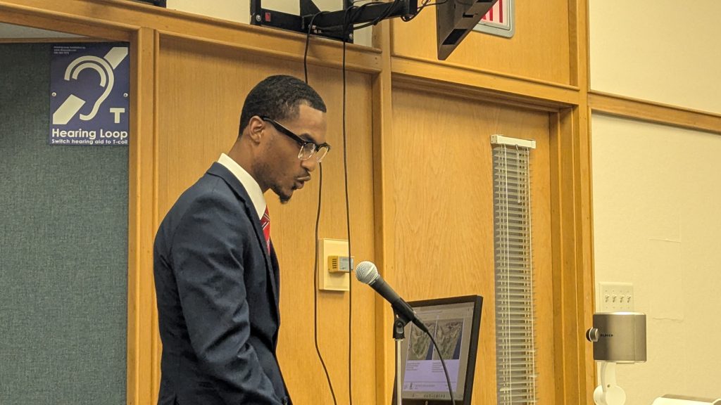 Jacob Amos makes his presentation to the Oshkosh Common Council. Photo: Lisa M. Hale/Civic Media